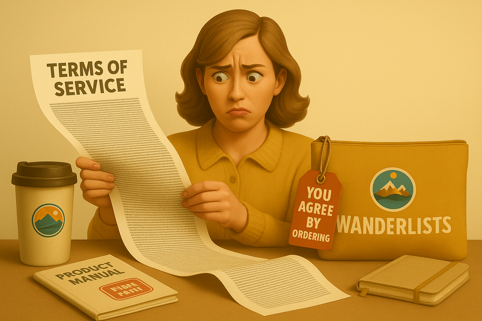 Questions about the Terms of Service should be sent to us at shop@thewanderlists.com.