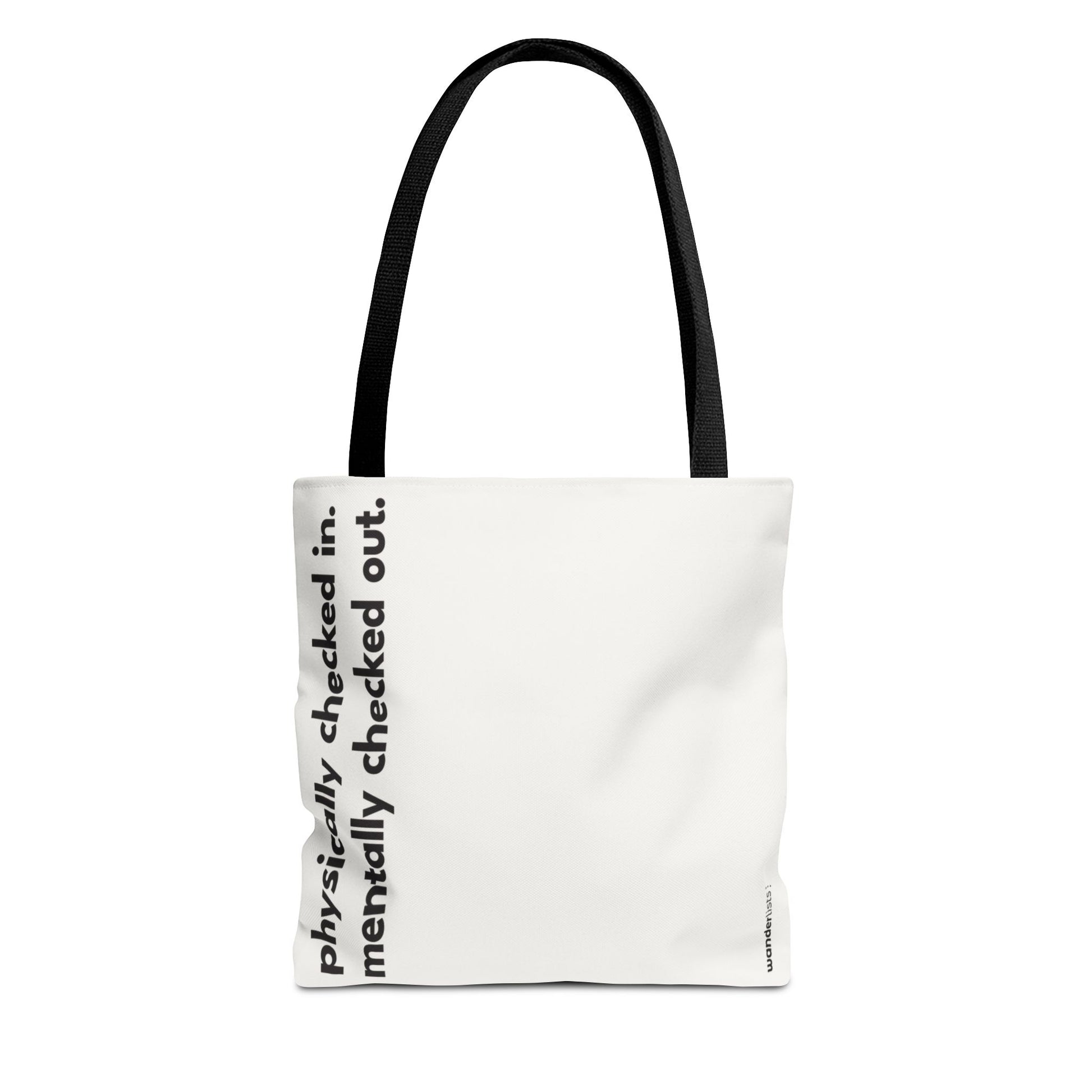 Built for boarding lines, snack runs, and spontaneous detours, our Wanderlists totes hold it all without holding you back. The roomy interior fits your daily chaos (and then some), while the bold quotes on the front do all the talking.